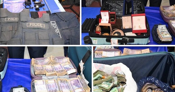 গ্রেফতারের সময় তাদের হেফাজত থেকে ১ কোটি ১৬ লক্ষ ৪৫ হাজার ৫০০ টাকা, ৬৫টি ১০০ ইউএস ডলারের নোট, ৪টি ২০ ইউএস ডলারের নোট, ১টি ০৫ ইউএস ডলারের নোট, ০১টি ০১ ইউএস ডলারের নোট, ৪১টি ১০০০ থাইবাথ নোট, ১১টি ১০০ থাইবাথ নোট, ০২টি ৫০০ থাইবাথ নোট, ২৮টি ২০ থাইবাথ নোট, ০৩টি ৫০ থাইবাথ নোট, ২০টি ৫০০ দেরহামের নোট, ০১টি ১০০ দেরহামের নোট, ০১টি ২০ দেরহামের নোট, ০৩টি ১০ দেরহামের নোট, ২টি ০৫ দেরহামের নোট, ৫টি ১০০ কানাডিয়ান ডলারের নোট, ২টি ১০ সিঙ্গপুর ডলারের নোট, ১টি ০২ সিঙ্গপুর ডলারের নোট, ১টি ১০০ রিয়ালের নোট, ২টি ৫০ রিয়ালের নোট, ২টি ১০ রিয়ালের নোট, ৩টি ০৫ রিয়ালের নোট, ১টি ০১ রিয়ালের নোট, ১টি ০২ হাজার রুপির নোট, ৬০টি ৫০০ রুপির নোট, ১টি ২০০ রুপির নোট, ০৫টি ১০০ রুপির নোট, ৫টি ৫০ রুপির নোট, ৪টি ২০ রুপির নোট, ৬টি ১০ রুপির নোট, ৩টি নেভি ব্লু রংয়ের বুলেটপ্রুফ জ্যাকেট সামনে ও পিছনে উভয় পাশে ইংরেজিতে POLICE লেখা ও ২টি প্রাইভেটকার (Land Cruiser ZX Hard jeep Toyota M crop 2021 ও Harrier Hard jeep Toyota M crop 2014) জব্দ করা হয়।
