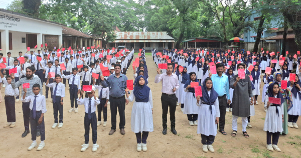 শেষে মাদক ও বাল্য বিয়ে প্রতিরোধ করার শপথ নিয়ে শিক্ষার্থীরা এসব বিষয়কে লাল কার্ড দেখান।