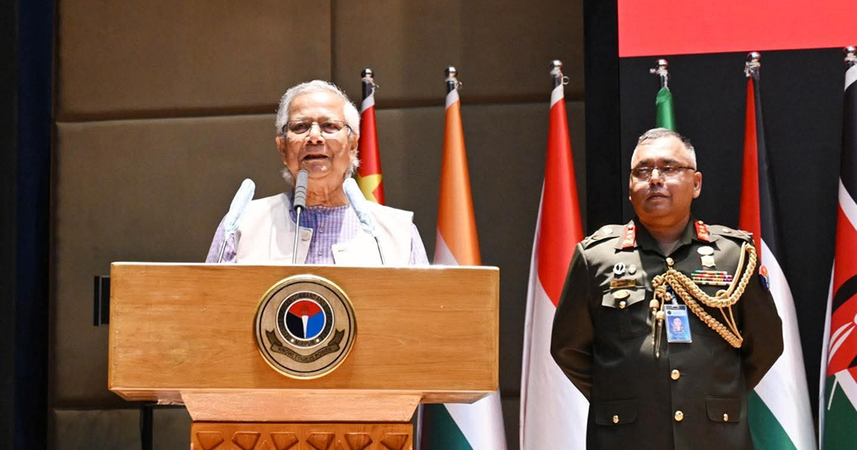 আজ বুধবার (১৯ নভেম্বর) দুপুরে মিরপুর সেনানিবাসের ডিফেন্স সার্ভিস কমান্ড অ্যান্ড স্টাফ কলেজের (ডিএসসিএসসি) অডিটোরিয়ামে কোর্স-২০২৫–এর গ্র্যাজুয়েশন সনদ প্রদান অনুষ্ঠানে প্রধান অতিথির বক্তব্যে তিনি এ আহ্বান জানান। বাংলাদেশসহ বিশ্বের ২৪টি দেশের তরুণ সামরিক কর্মকর্তাদের হাতে সনদ তুলে দেন তিনি।