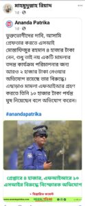 সম্প্রতি “আনন্দ পত্রিকা” নামের একটি অনলাইন পোর্টালের ফেসবুক পেইজে এসআই মোস্তাফিজুর রহমানের ছবি ব্যবহার করে ক্যাপশন সামাজিক যোগাযোগ মাধ্যমে প্রকাশ করলেও কার্যত ওয়েবসাইট ভিজিট করে এর তথ্য উপাত্তসহ বস্তুনিষ্ঠ কোন সংবাদ পাওয়া যায়নি।