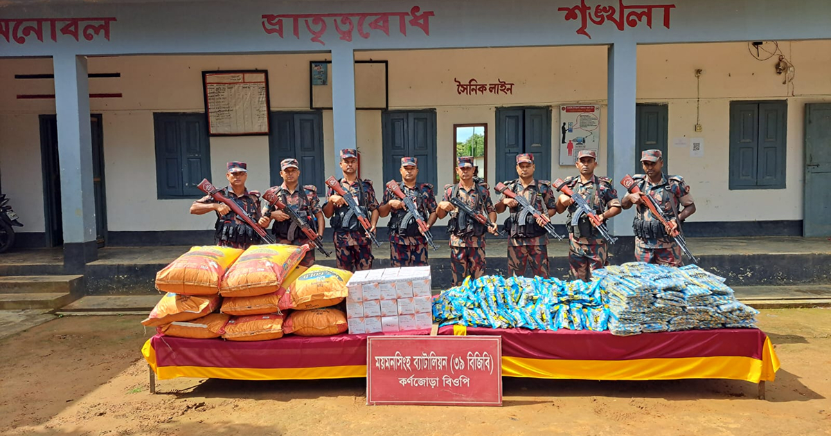 শেরপুর-ময়মনসিংহ সীমান্তে বিজিবির অভিযানে বিপুল ভারতীয় মাদ সহ মালামাল আটক