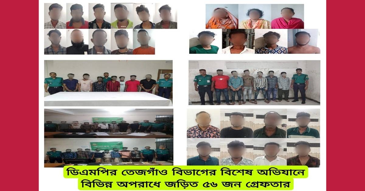ডিএমপির তেজগাঁও বিভাগের বিশেষ অভিযানে বিভিন্ন অপরাধে জড়িত ৫৬ জন গ্রেফতার