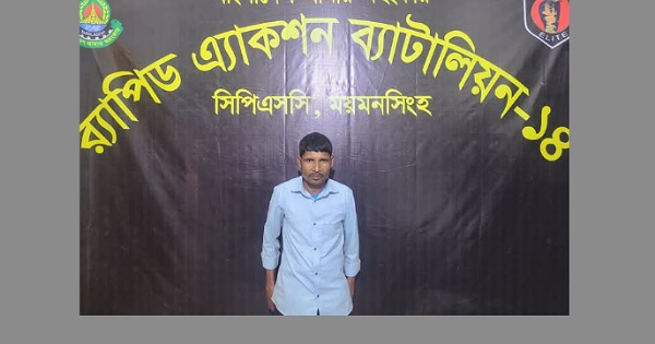 র‍্যাব-১৪, ময়মনসিংহ কর্তৃক ১৪ কেজি গাঁজাসহ ১ মাদক ব্যবসায়ীকে গ্রেফতার