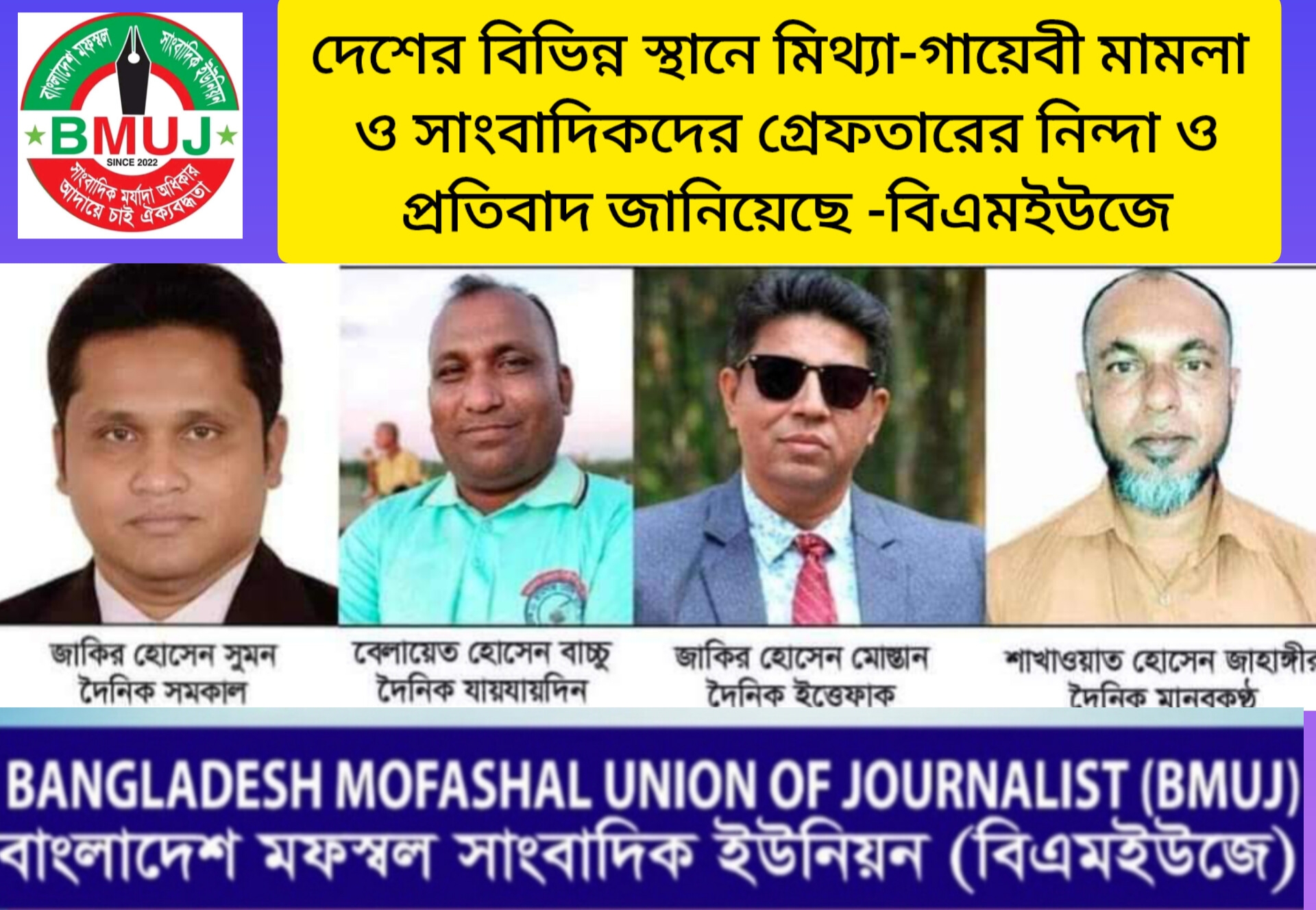 দেশের বিভিন্ন স্থানে মিথ্যা-গায়েবী মামলা ও সাংবাদিকদের গ্রেফতারের নিন্দা ও প্রতিবাদ জানিয়েছে -বিএমইউজে