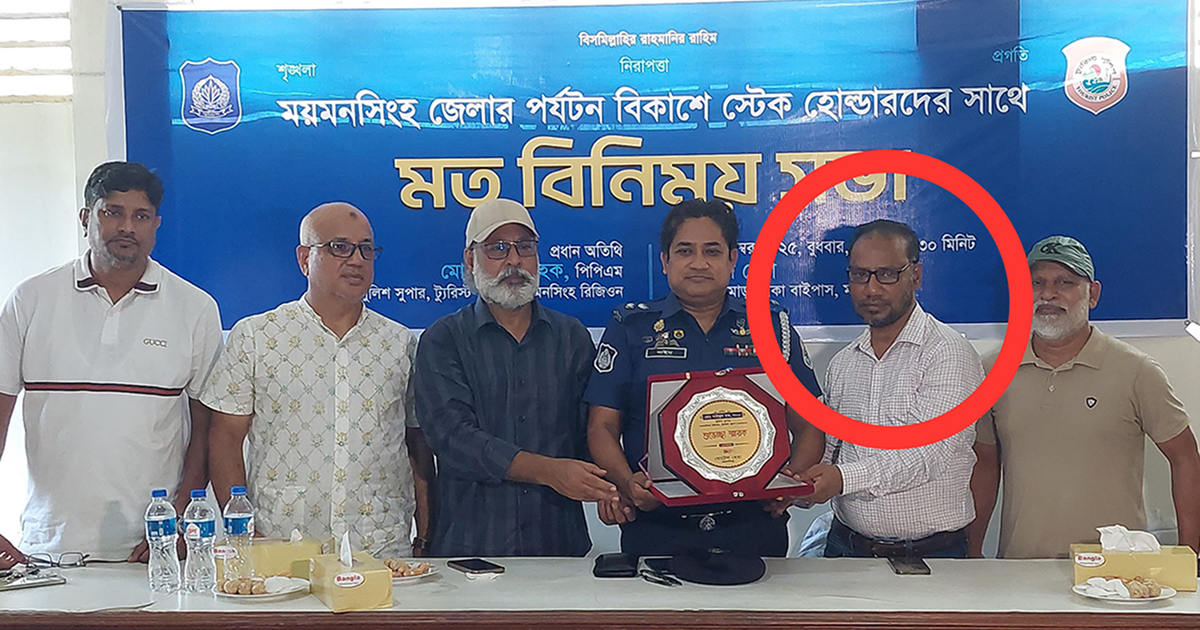 বুধবার (২৪ সেপ্টেম্বর) দুপুরে ময়মনসিংহ নগরীর ময়নার মোড় এলাকার হোটেল হেরা’র হলরুমে জেলার পর্যটন বিকাশে স্টেক হোল্ডারদের সঙ্গে এই মতবিনিময় সভা অনুষ্ঠিত হয়। উক্ত সভায় আওয়ামী লীগ নেতাকে পাশে বসিয়ে মতবিনিময় সভা করেছেন সভার প্রধান অতিথি ট্যুরিস্ট পুলিশ ময়মনসিংহ অঞ্চলের এসপি মো: নাইমুল হক পিপিএম।