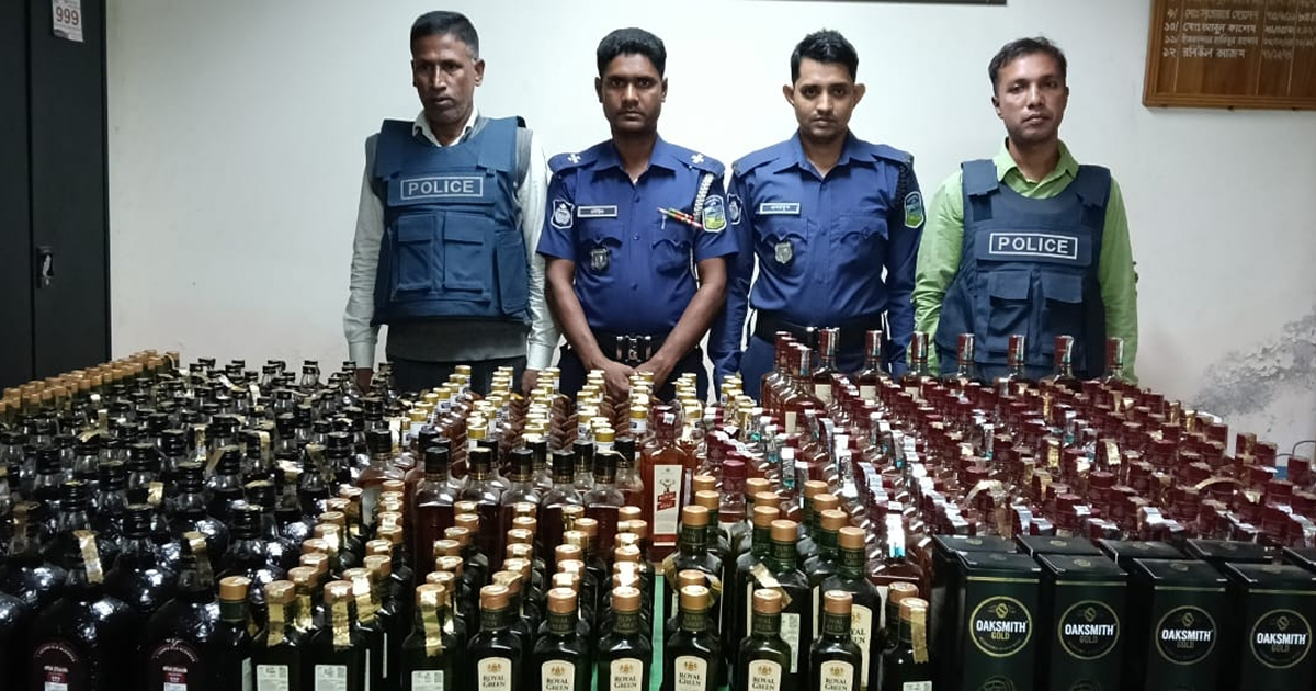 ঝিনাইগাতী সীমান্তবর্তী মাজাহারুলের বাড়ি থেকে পুলিশের অভিযানে বিপুল পরিমাণ ভারতীয় মদ জব্দ